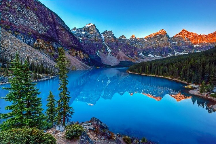 班夫 - 弓湖(15min) - 佩投湖 (60min) - 鸭爪冰川 (passby ) - 露易丝湖村午餐 (自费,60min) -强斯顿峡谷 (75min) - 班夫