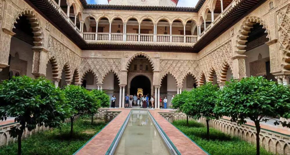 塞维利亚王宫集宫殿与城堡于一身,是欧洲最古老的皇家宫殿,1987年被列为世界遗产。在这座建筑中,可以同时看到哥特式建筑元素和伊斯兰粘土建筑风格,成为穆德哈尔式建筑的典范。这里还是电视剧《权力的游戏》中多恩的马泰尔家族的皇宫庭园拍摄地。