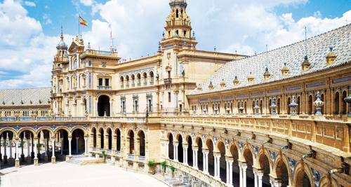 马拉加 → 悬崖浪漫山城:龙达(1小时)→ 安达鲁西亚自治区灵魂城市:塞维利亚 → 塞维利亚大教堂(自费,30分钟)→ 塞维利亚皇宫(外观,15分钟)→ 教堂广场(自由活动,1小时,若客人自行购票/提前预定塞维利亚王宫,可在此时段内自费入内参观)→ 圣十字区(30分钟)→ 黄金塔(外观,15分钟)→ 玛利亚路易莎公园(30分钟)→ 西班牙广场(15分钟)