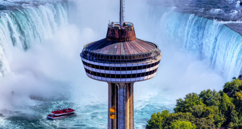 观瀑天龙塔可以让游客更好地观看尼亚加拉瀑布的全景,是距离马蹄瀑布最近的一座塔。高达百余米。通往塔顶瞭望台的电梯一半镶着玻璃,可以在电梯升降的同时欣赏风景。塔里设有剧院和游戏场所,最上层是旋转餐厅。您将有机会在著名的360度旋转餐厅享用美食,或者在塔楼的Summit Suite自助餐厅享受更适合家庭出游的休闲餐饮。美景尽收眼底,在距尼亚加拉瀑布775英尺之上,无论是两人的浪漫一餐,还是一家人出来度假,放松全身,都可尽情享受豪华优越的就餐环境和世界一流的烹饪美食吧!就餐期间Ride-to-the-Top和Indoor/Outdoor观景台尼亚加拉大瀑布可免费进入。