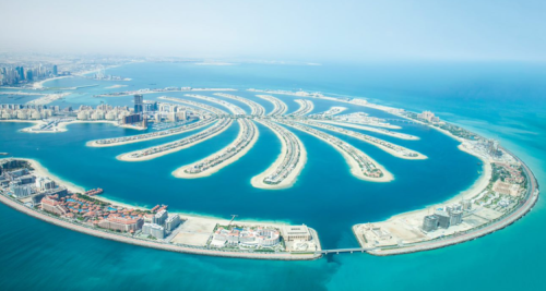 棕榈岛是迪拜政府耗巨资,在碧波如洗的阿拉伯湾上建造的人工岛屿群,堪称奢华的典范。每座岛屿包括三部分:“树干”、“树冠”和新月型围坝。从空中俯瞰,朱美拉棕榈岛形似棕榈树干,岛上还种植了12000棵棕榈树。耗资140亿美元打造而成的迪拜棕榈岛被誉为“世界第八大奇迹”。