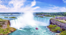 多伦多 → 尼亚加拉瀑布 → 尼亚加拉瀑布船(自费,60分钟)→ 克利夫顿山商业街区(60分钟,可自费享用午餐)→ 尼亚加拉瀑布观景台(15分钟)→ 尼亚加拉瀑布水帘通道(自费,45分钟)→ 尼亚加拉深度游(必付项目,2小时)→ 多伦多