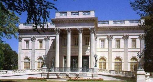 云石别墅建于1884年,历时4年,于1892年建成。别墅共有50个房间,耗资1100万美元, 其中700万美元用于50万立方英尺的大理石,别墅建造里外用料俱为大理石,名副其实的大理石别墅。《了不起的盖茨比》就是在这里取景的,由此可见它有多么富丽奢华了。这是一栋欧式别墅,具有希腊建筑风格。正面有四根两层楼高的柯林斯罗马柱。一层的窗户是框架拱形结构,二层则是矩形结构。