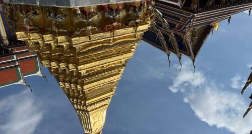 玉佛寺位于曼谷大皇宫的东北角,是曼谷的标志,是泰国旅游必到之地,历代王族都在这里举行重要的仪式。像泰国这样的佛教国家,宗教历来就是和王权不分家的,而玉佛寺也就是大皇宫的一部分,是泰国所有寺庙中崇高的代表。玉佛寺占整个大皇宫的四分之一,寺内建筑宏伟堂皇,金玉璀璨,融泰国诸佛寺特点于一身,是泰国国内最大的寺庙。当你进入这座寺庙建筑群时,会看到一些有6米高、身穿战衣的让人生畏的雕像。这些雕像就是夜叉,他们是保护玉佛免受邪灵侵犯的守卫。你还可以看到一些描绘《拉玛坚》史诗的壁画。台阶上美丽的镀金半人半狮像(Apsonsi),其职责也是守卫寺庙。供奉稀世珍宝玉佛像的玉佛殿共有40根四角型立柱,并在廊下装饰有112尊鸟形人身的金像。殿里很宁静,充满了香火的气味。玉佛由整块翡翠雕琢而成,由玻璃盖保护,上有多层华盖,基座相当高。此玉佛通体苍翠,经历过多次战火的劫难,是稀世之宝,直到1784年泰国国王才迎请玉佛至玉佛寺供奉,可谓命运多舛。