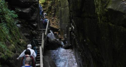 新罕布什尔州盆地是怀特山脉最具标志性的风景胜地之一。对于第一次穿越弗兰科尼亚山口的人来说,这是必经之地,值得当地人一再崇敬。新生的佩米格瓦塞特河 (Pemigewasset River) 在冲出峡谷的过程中形成了一系列令人愉悦的强大瀑布。与典型的山间溪流相比,这条河的力量和水量更大,它侵蚀了基岩,形成了各种迷人的瀑布和水池,使其成为州居民和游客的珍贵景点。观赏盆地不需要费什么力气,只需沿着一系列铺砌的砾石步道短暂短途步行即可,提供充足的观赏瀑布的机会。