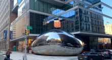 英裔印度雕塑家安尼什·卡普尔 (Anish Kapoor) 在纽约创作了他的第一件永久性公共艺术品。它长14米,高近6米,重40吨,外观与芝加哥著名的云门或艺术家最著名的作品“豆子” (2006)相似。它坐落在塔楼底部的人行道上,看起来像是被挤在其中一间悬臂式公寓下面。