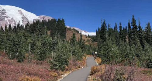 天堂游客中心位于雷尼尔山西南方,拥有美丽的山景、潺潺的流水和清澈的湖泊。夏天有漫山遍野的野花,冬季有一望无际的冰雪,在不同的季节可以领略不同的美景。天堂区有很多徒步道,可以根据自己的体力情况,选择相应难度的徒步道。