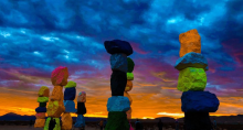 一望无垠的内华达州拉斯维加斯远郊的沙漠之中,伫立着7座用彩色石头堆栈起来的柱子,合来就叫做七彩巨石阵(Seven Magic Mountains)。这七座9米高的彩虹般的巨石阵,屹立在荒漠中,为沙漠单一的景色中注入了几分活泼的色彩。这里是网红打卡拍照一定不能错过的地方。