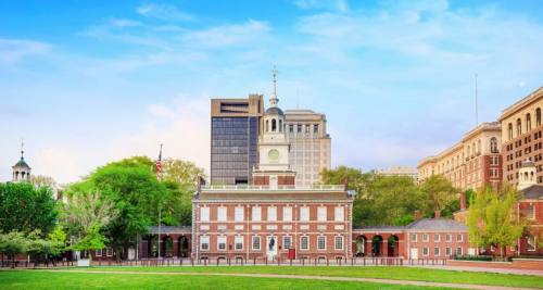 费城这片土地,见证了美国的独立和诞生。根据美国独立战争的精神建造的国家独立历史公园里包含了一些与美国革命和建国历史有关的历史建筑,被称为“美国最具有历史意义的一平方英里“。在公园里,可以看到绿树环抱的独立广场,高高耸立的乳白色钟塔,还有着站立在草坪上开国群英的铜像,这里的整体氛围使人感到庄严肃穆。