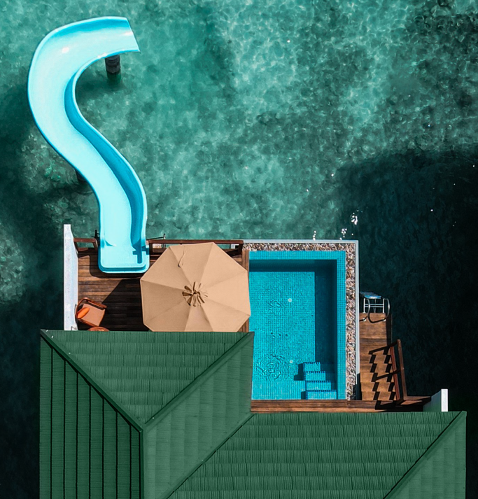 Water Villa with Pool + Slide,入住:三大或者两大两小;