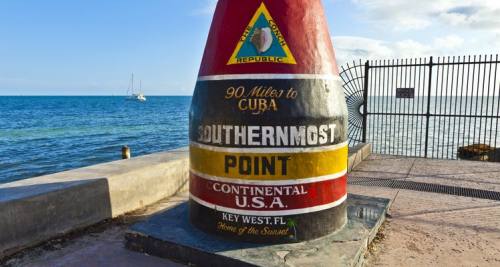 全美大陆最南端地标有“美国的天涯海角”之称,该地标位于佛罗里达最南端,亦是全美国大陆最南端,这里距离古巴只有90英里。今天,它是美国访问量最大,拍照最多的景点之一。