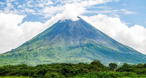阿雷纳火山是哥斯达黎加最著名、最活跃的火山,也是世界上最活跃的火山之一。从附近方圆几公里任意一个地方都可以看到它的锥形火山口,在蓝天白云的映衬之下,格外宏伟,气势非凡。