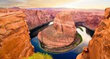 早上前往全世界最奇特的狭缝洞穴,世界十大摄影地点之一的下羚羊彩穴! 跟随纳瓦霍印第安向导进入彩穴。彩穴岩壁融合了千百年来风和洪流的侵蚀,呈完美的波浪形,仿佛是一副抽像画。随后前往大峡谷的起源点 - 包伟湖。沿着狭长的谷缝观赏包伟湖,惠风和畅,碧波如镜,红石如焰,此刻只愿偷得浮生半日闲。