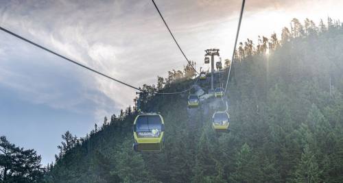 乘坐观光缆车登上威士拿山脉最高点,再乘搭峰到峰吊车(Peak 2 Peak),到另一个山峰黑梳山之山顶,360度欣赏令人惊叹的大自然美景。森林、冰川、湖泊、群山峻岭尽入眼帘,一览无余。