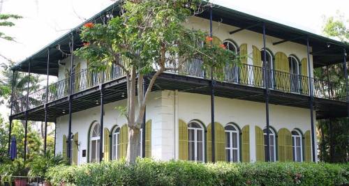 海明威故居博物馆为位于美国佛罗里达的西礁岛上,海明威在这里只住了10年,这10年也是他写作的鼎盛期,很多重要的作品也都是在这里撰写的。故居目前还保留着海明威居住时的样子,包括随处可以见的书籍和杂志,随时准备接待朋友的起居室。踏进庭院,满眼是绿树繁花,显得静谧而安详。不长的甬道尽头,掩映在树盖和花影中的是一座西班牙风格的二层小楼,柠檬黄的墙壁,草绿色的窗棂和墨蓝色的屋顶,给人一种深邃与悠远的感觉。