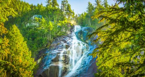 香浓瀑布位于斯塔瓦姆斯酋长省公园中,高335米,是省内第三高的瀑布。瀑布是以19世纪末期在此地定居的砖头制造商William Shannon的名字命名。与湍急的瀑布相比,香浓瀑布多了几分柔媚娇俏,水流从花岗岩峭壁坠落,流入豪湾,注入太平洋。