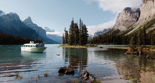 贾斯珀小镇 → 巫药湖(途径)→ 玛琳湖 → 玛琳湖游船(自费,90分钟)→ 弓湖(20分钟)→ 鸦爪冰川(途径)→ 班芙