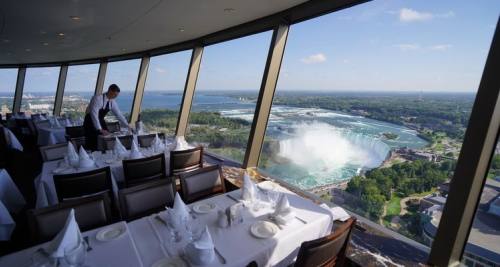 观瀑天龙塔可以让游客更好地观看尼亚加拉瀑布的全景,是距离马蹄瀑布最近的一座塔。高达百余米。通往塔顶瞭望台的电梯一半镶着玻璃,可以在电梯升降的同时欣赏风景。塔里设有剧院和游戏场所,最上层是旋转餐厅。您将有机会在著名的360度旋转餐厅享用美食,或者在塔楼的Summit Suite自助餐厅享受更适合家庭出游的休闲餐饮。美景尽收眼底,在距尼亚加拉瀑布775英尺之上,无论是两人的浪漫一餐,还是一家人出来度假,放松全身,都可尽情享受豪华优越的就餐环境和世界一流的烹饪美食吧!就餐期间Ride-to-the-Top和Indoor/Outdoor观景台尼亚加拉大瀑布可免费进入。