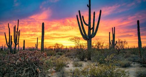 巨人柱国家公园坐落于美国亚利桑那州,其目的在于保护长成的巨人柱仙人掌林,公园因此而得名。该公园占地面积为368平方公里,分为东西两部分,园内多为沙漠地形、山脉仙人掌林和松树林,是欣赏沙漠景色的好去处。仙人掌林大多分布在公园内沙漠山脉底部多岩石的斜坡上,巨型巨人柱仙人掌直到五月下旬或六月上旬才开花。