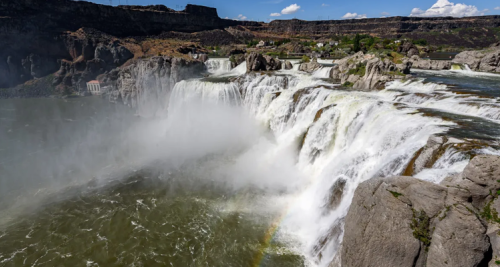 肖松尼瀑布位于蛇河上游,肖松尼瀑布落差60米,丰水期宽250米,是美西最大的瀑布,号称美西的尼亚加拉。瀑布一侧设立观景台,可以领略瀑布雄姿。