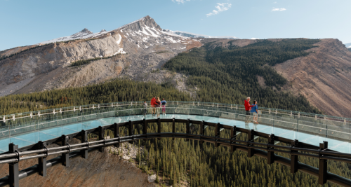 灰熊镇/鲑鱼湾 → 冰河国家公园(途经)→ 优鹤国家公园(途经)→ 班芙国家公园 → 鸦爪冰川(途经)→ 哥伦比亚冰川(2.5小时,含冰原雪车、天空步道游览时间)→ 弓湖(途经)→ 班芙小镇(60分钟)