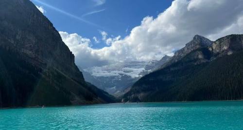 位于1号公路南侧的露易丝湖是班芙国家公园内一处著名景点,它以维多利亚山为屏障,在茂密森林的包围下,山水相依,形成一幅完美的风景照,露易丝湖就像一颗明珠,超尘脱俗,因此它被誉为“落基山脉上的蓝宝石”,成为摄影师们青睐的湖泊。