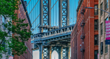 布鲁克林大桥是是连接曼哈顿和布鲁克林知名的一座大桥,全世界最古老的悬索大桥之一,纽约的地标之一。桥上的斑驳痕迹,宏伟的缆线吊索,让这个130余年历史的大桥成为众多艺术家的朝圣地。桥上设有步行和骑行专用道。漫步在大桥上,船只在桥下经过,高楼林立的曼哈顿尽在眼前。