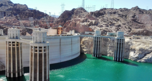 胡佛水坝是美国综合开发科罗拉多河水资源的一项关键性工程,位于内华达州和亚利桑那州交界之处的黑峡。大坝建在深窄峡谷内,坝基基岩为坚硬的安山岩、角砾岩,具有防洪、灌溉、发电、航运、供水等综合功效。